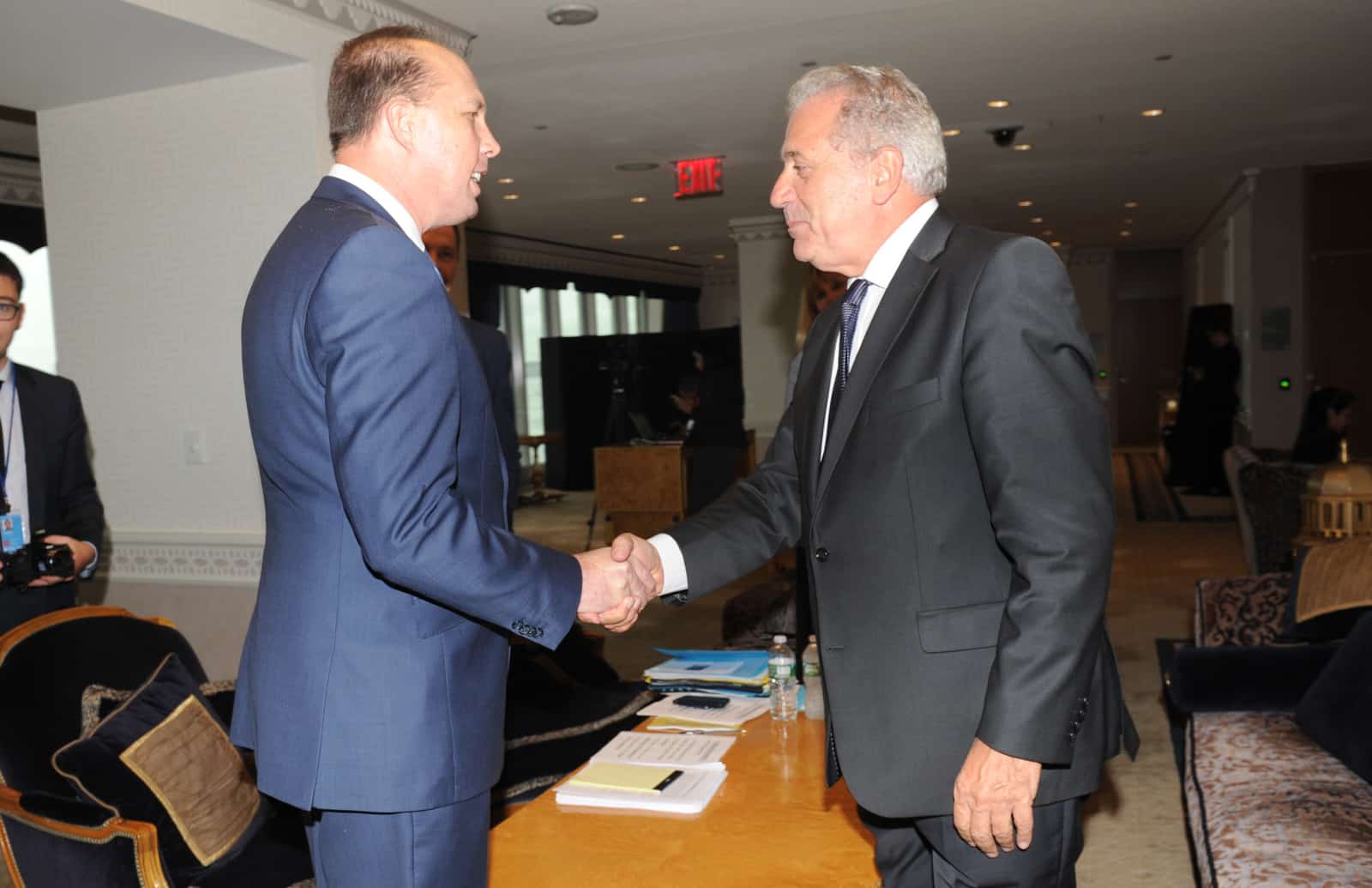 September 19, 2016 – New York,New York, United States European Commissioner for Migration, Home Affairs and Citizenship, Dimitris Avramopoulos has a bilateral meeting with Australian Minister for Immigration and Border Protection, HE Peter Dutton at the United Nations. Dimitris Avramopoulos (CC2.0CC)